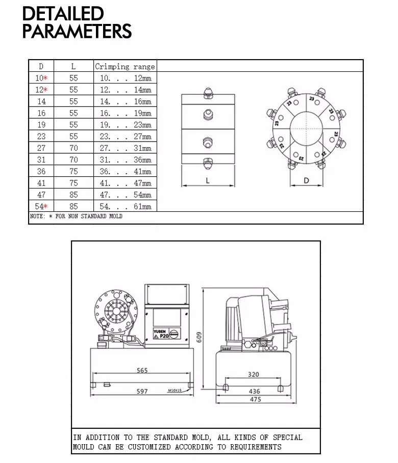 The Specification of YB-P20 hose crimping machine as below: